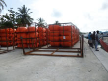 Este flotador de tubería de bajo precio, pero de alto rendimiento es idealmente aplicable para el uso de tubería de descarga. Su carcasa exterior esta hecha de polietileno de media densidad, capaz de aguantar altas presiones; su excelente dureza le permite a su vez funcionar en mares y lagos. Su cubierta de vinilo esta rellenada con materiales de espuma hechos a base de poliuretano de alta resistencia y alta flotabilidad. Caracterizadas por su peso liviano, así como por su estructura compacta y razonable en tamaño, nuestro producto es sencillo en uso e instalación. Adicionalmente, es un flotador para tubería que ofrece muy buena resistencia a la abrasión, excelente resistencia a la corrosión y una insuperable resistencia ante las condiciones climáticas extremas tales como las olas en tormenta. Este producto ofrece una larga vida de uso, tres veces más que las de un flotador de acero.